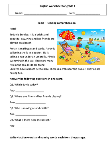 Reading Comprehension Worksheets & Printables. Comprehension Quick Links Reading Comprehension Passages and Questions for April Reading comprehension worksheets. You can do the exercises online or download the worksheet as pdf. Read a short text about a planned visit to London, and answer some simple questions.