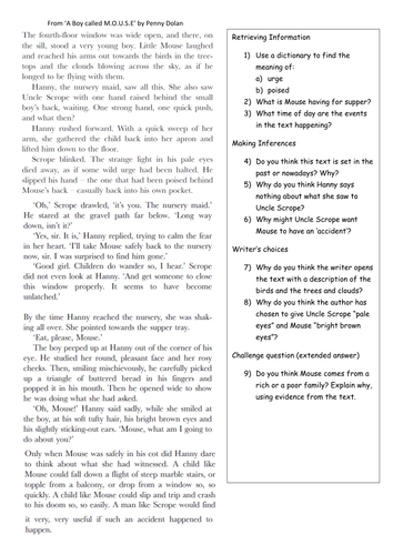 Printable Reading Comprehension Year 5. The first page is the actual reading passage which is followed by a multiple-choice selection of questions. They will talk about and explore their understanding of a wide range of books including stories, non-fiction, poetry, and play-scripts.