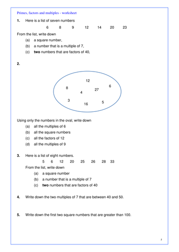 Maths KS2, KS3 or GCSE revision. Factors, multiples and ...